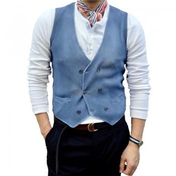 Settefili Cashmere セッテフィーリ・カシミア 強撚コットン 6Bダブルニットジレ サックスブルー【セール30】 【イタリア製】【送料無料】