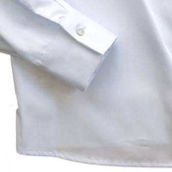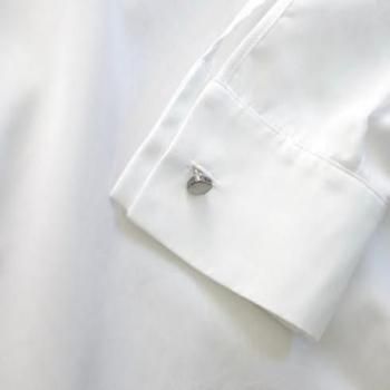 ホワイトのカフスは付き合わせでスクエア型でサイドに少し輝きのあるカフスボタンがつきます。