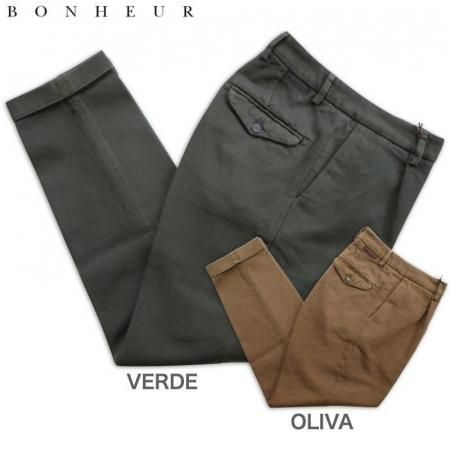 BONHEUR ボネール コットンドリル タックテーパードパンツ P.Aderci 103【イタリア製】【送料無料】【秋冬】綾織 厚手コットン 綿ギャバ オンオフ兼用 ナポリ ファクトリーブランド
